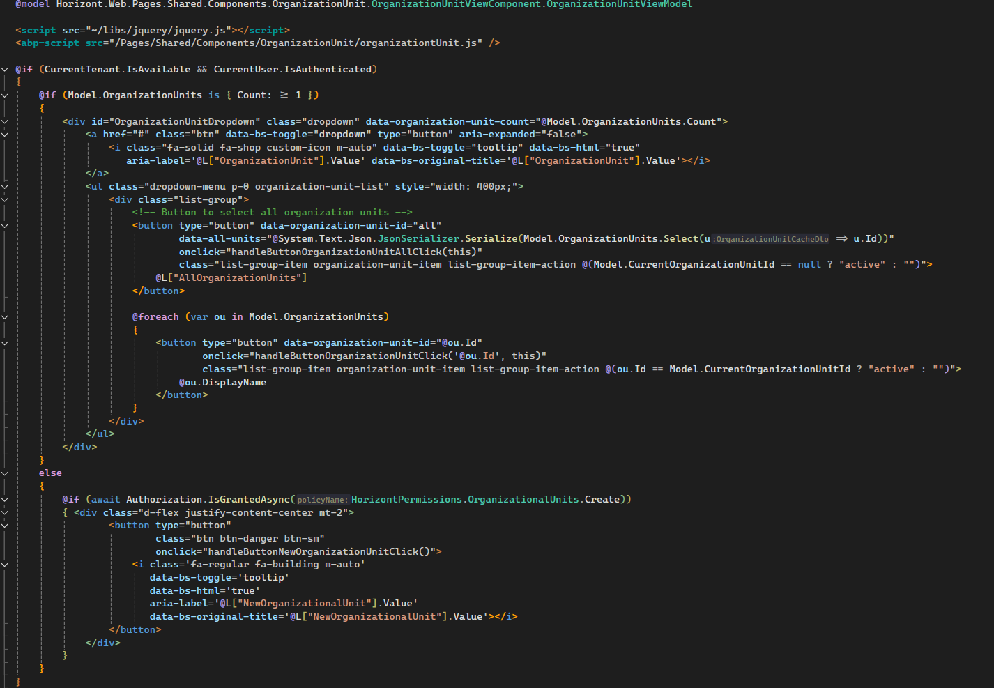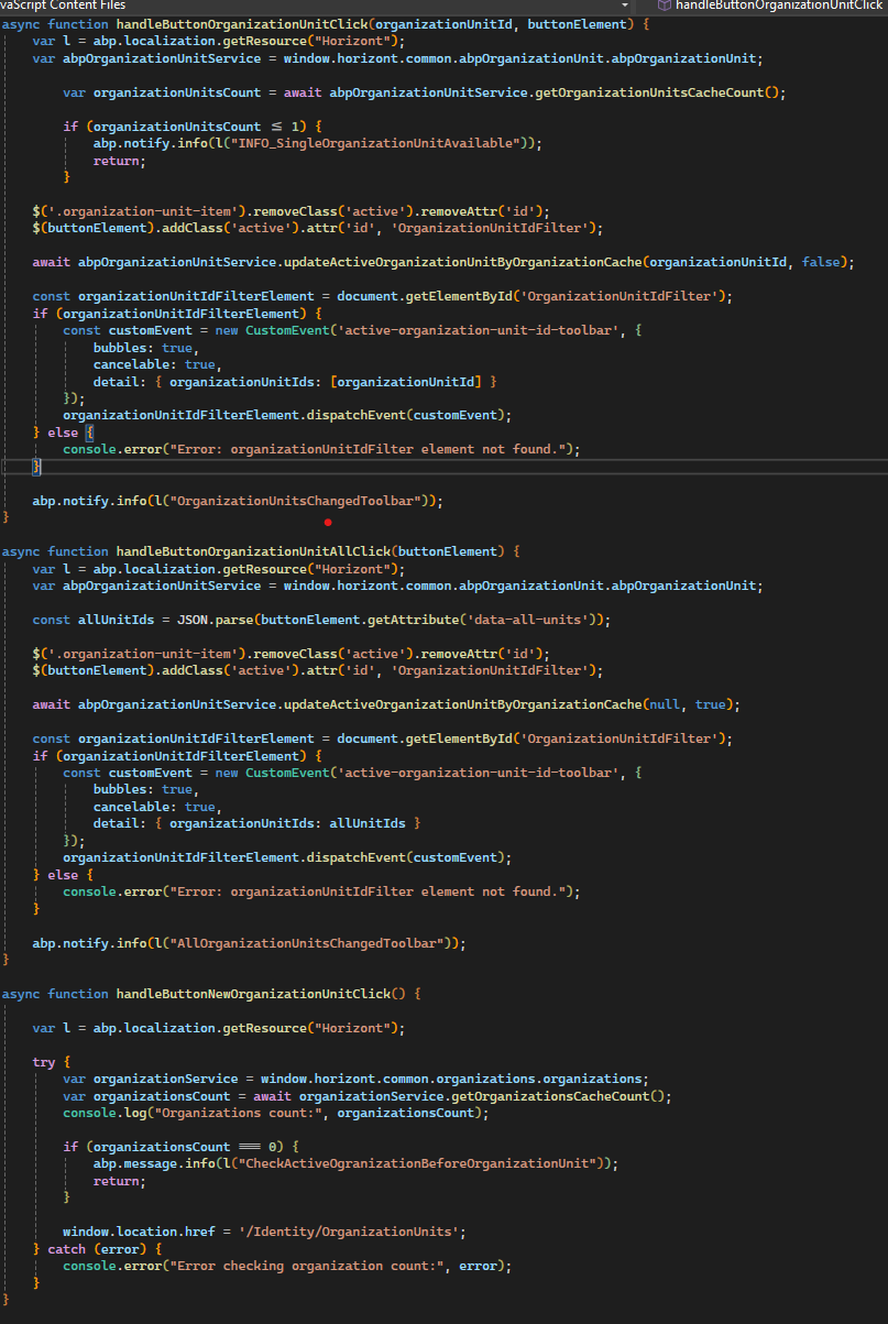 In application, we have a toolbar icon that displays all Organization Units the user has permission to access. Inspired by Maliming's approach (Switching Between Organization Units), we’d like to ensure this UI element is updated dynamically when we add users or roles to Organization Units.