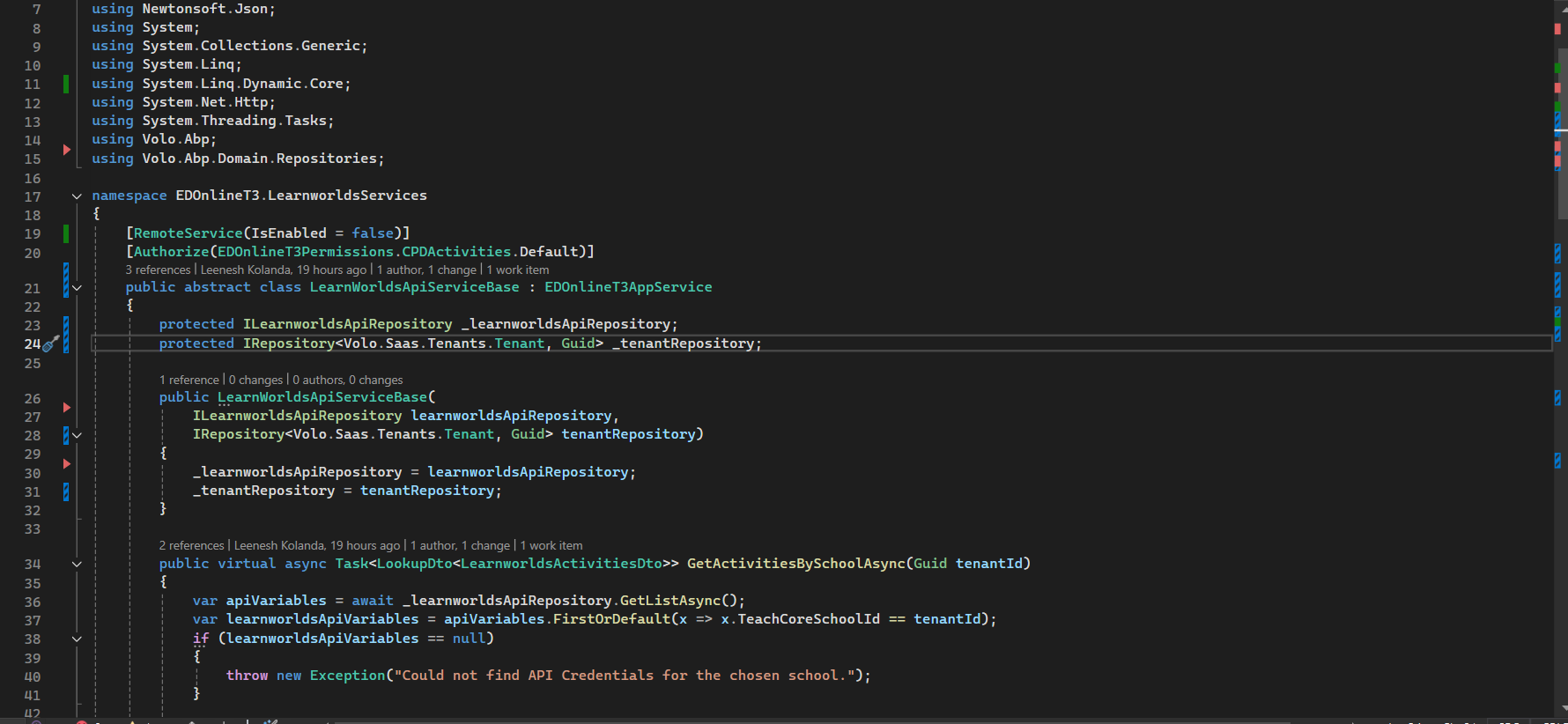 So question though, I need to use the APIService and bind it to another Controller/action, which will populate a dropdown, I initially also tried injecting the service yet still got the dependency injection exception. Also the manager class, do I need that? I have not created a LearnworldsApiManager class though