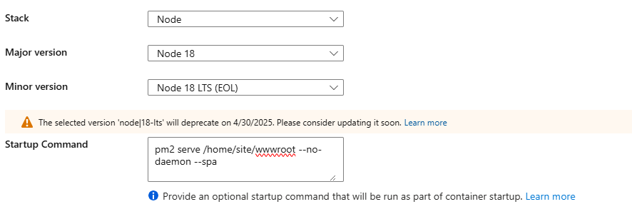 pm2 serve /home/site/wwwroot --no-daemon --spaNo other configurations