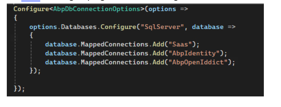 The problem description : I have an ABP Auth Server application with MSSQL database. My ABP HostApi created in another solution with PostgreSQL database. I am trying to link the Host Api with the Auth server by add the connection string of auth app in the Appsetting file of host Api , after adjust the link of the Auth server inside the appsetting file. the behavior of the api always use the PostgreSQL source as shown in image . Note: Auth Server using ABP 9.0.0 , and API Host using ABP 9.1.0