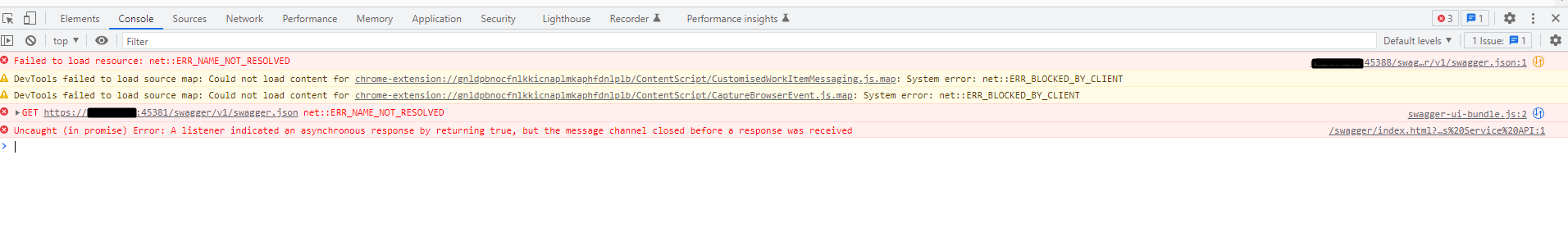 I don't have an error on log side but in cosole
