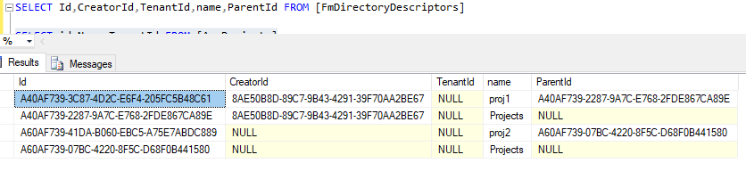 also when im trying to create a new filemanagement directory from UI on FileManagement UI - folder is created but TenantID is not populated.