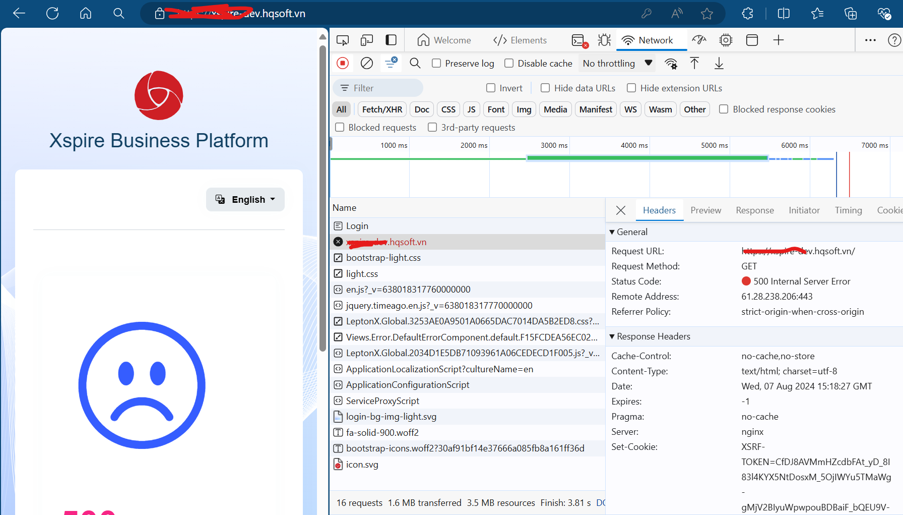 I dev Blazor WebApp with v8.2 running well on development environment but when publishing to production running on nginx/ubuntu the error happened after clicked on Login button at Login Form.