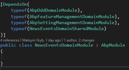 AbpSettingManagementDomainModule([DependsOn(typeof(AbpSettingManagementDomainModule))])).