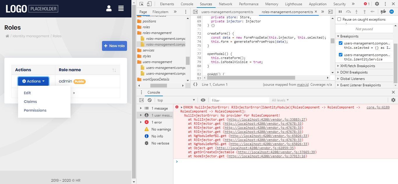 Hi, I'm trying to replace the roles and users components, everything seem done, but when i click on 'New role' or 'Edit', i could not reach the modal, just got the error message below: