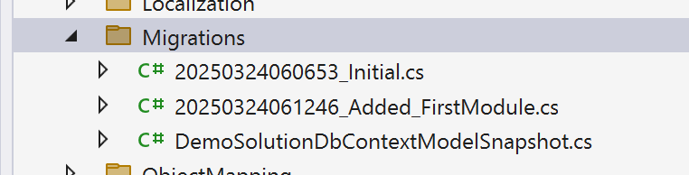 Hi, enisn I am not creating migrations. We are using ABP Studio + ABP Suite. I hope it will help to understand our goal: we want to use ABP Suite for creating Entities to be sure all needed code will be generated properly.