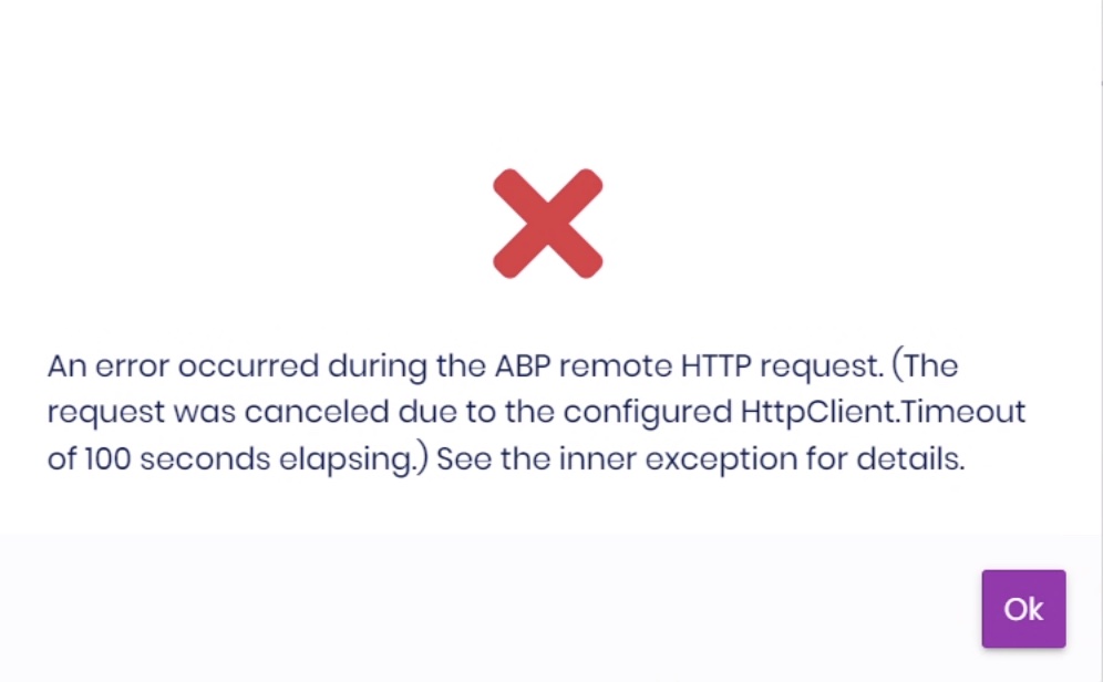 An error occurred during the ABP remote HTTP request. (The request was canceled due to the configured HttpClient.Timeout of 100 seconds elapsing.) See the inner exception for details.Volo.Abp.Http.Client.AbpRemoteCallException: An error occurred during the ABP remote HTTP request. (The request was canceled due to the configured HttpClient.Timeout of 100 seconds elapsing.) See the inner exception for details.Timeout happens after I click around in the Blazor app to send some requests. After waiting for a while, it works again but timeout will happen again after a few more clicks. Is there some kind of rate limit, or is something not working right? This is a fresh new solution from ABP Suite.