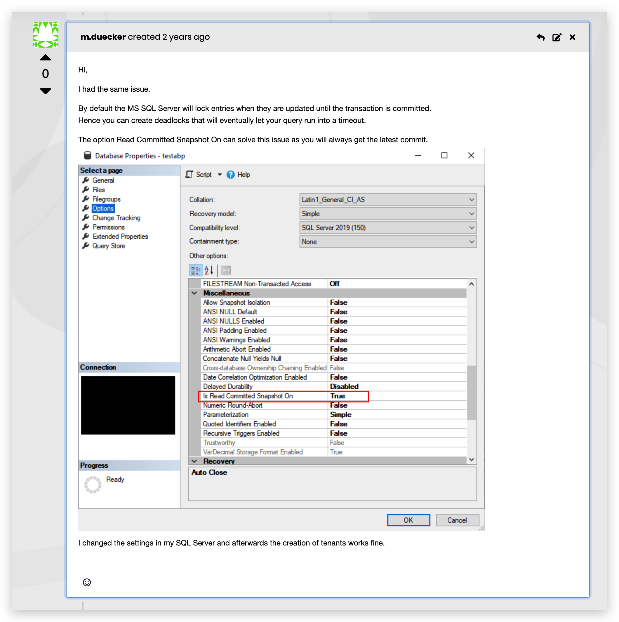 0Hi Am still waiting. All other features are working well. The API requests are very fast as well as UI response. Why would tenant creation timeout.
