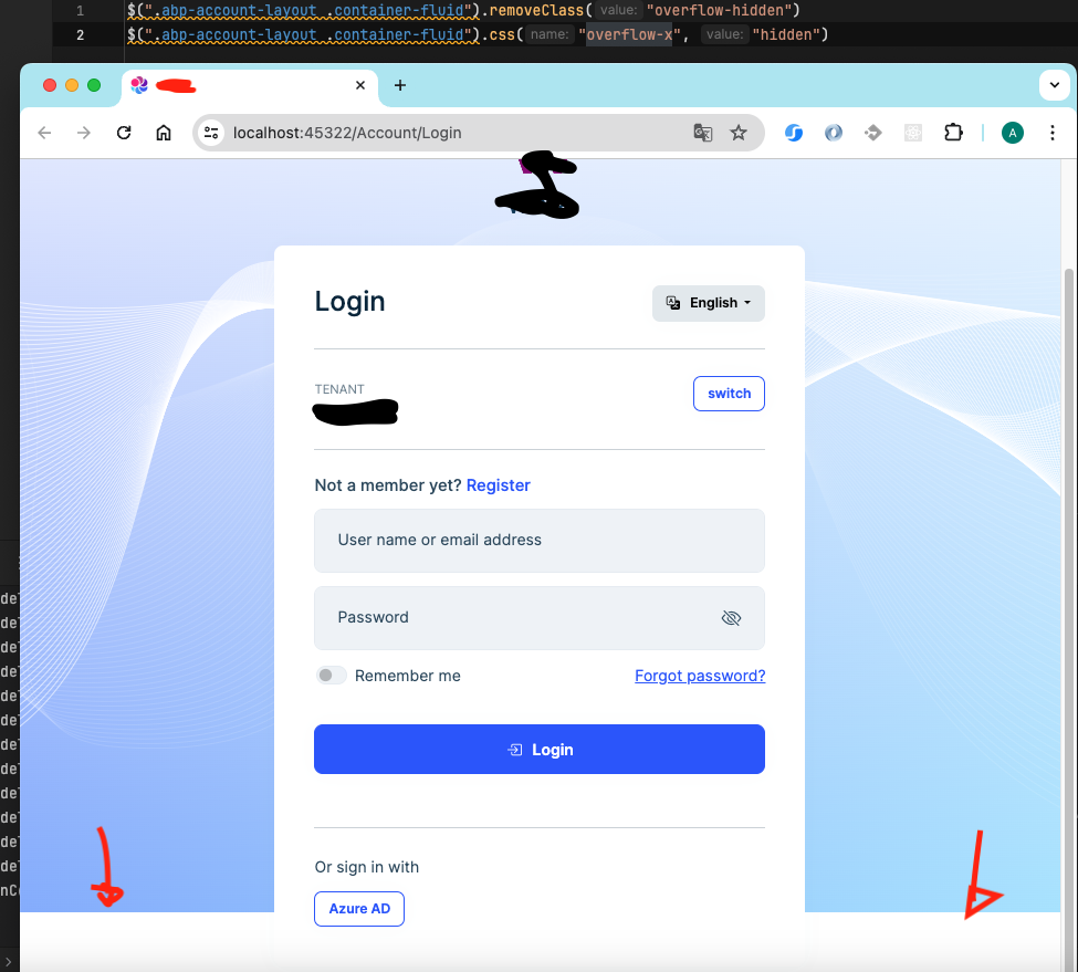// remove these two lines //$(".abp-account-layout .container-fluid").removeClass("overflow-hidden") //$(".abp-account-layout .container-fluid").css("overflow-x", "hidden") $(".lpx-login-bg").css("overflow-x", "hidden") -