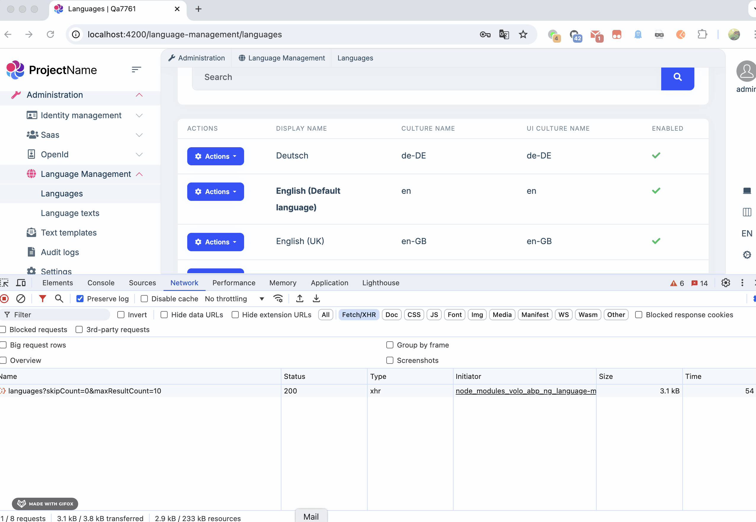 Is the request initiator chain looking wrong here? Because so far I am out of clues, what is wrong and why. Maybe I am missing some settings relevant for authentication or they are incorrect? There are just too many of them, plus custom code, so I try to move from inside analyzing those requests.IMPORTANT: this is not related to our custom pages only. The identical situation take place at ABP pages, e.g. Language Management. So it is not related to the components or guards.
