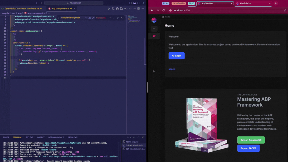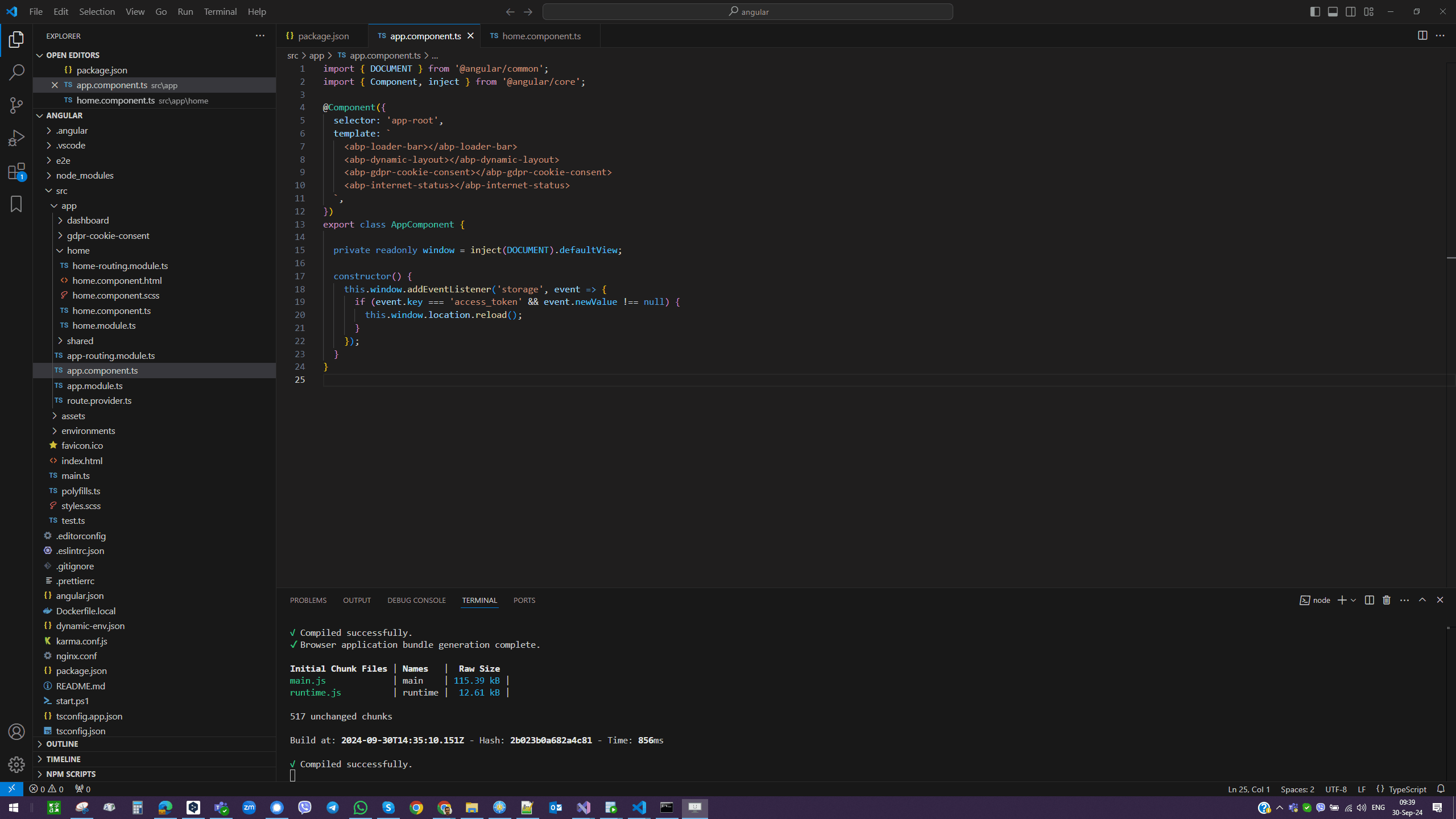app.component.ts:this.window.addEventListener('storage', event => { if (event.key === 'access_token' && event.newValue === null) { this.window.location.reload(); } });