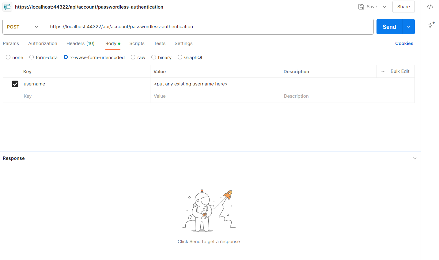 Run the AuthServer project (or the whole solution) In postman, hit this api endpoint,
