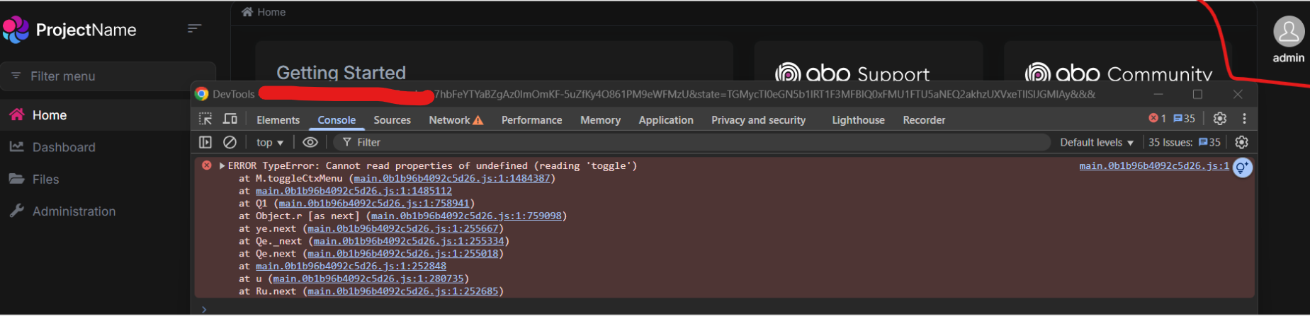 /?&&https://abp.io/?&&main.0b1b96b4092c5d26.js:1 ERROR TypeError: Cannot read properties of undefined (reading 'toggle') at M.toggleCtxMenu (main.0b1b96b4092c5d26.js:1:1484387) at main.0b1b96b4092c5d26.js:1:1485112 at Q1 (main.0b1b96b4092c5d26.js:1:758941) at Object.r [as next] (main.0b1b96b4092c5d26.js:1:759098) at ye.next (main.0b1b96b4092c5d26.js:1:255667) at Qe._next (main.0b1b96b4092c5d26.js:1:255334) at Qe.next (main.0b1b96b4092c5d26.js:1:255018) at main.0b1b96b4092c5d26.js:1:252848 at u (main.0b1b96b4092c5d26.js:1:280735) at Ru.next (main.0b1b96b4092c5d26.js:1:252685)Can you create a new question to ask the Angular team?