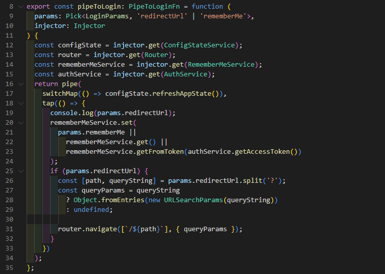 I have the solution, I have recreated the auth strategy classes, and redefined the function pipeToLogin,