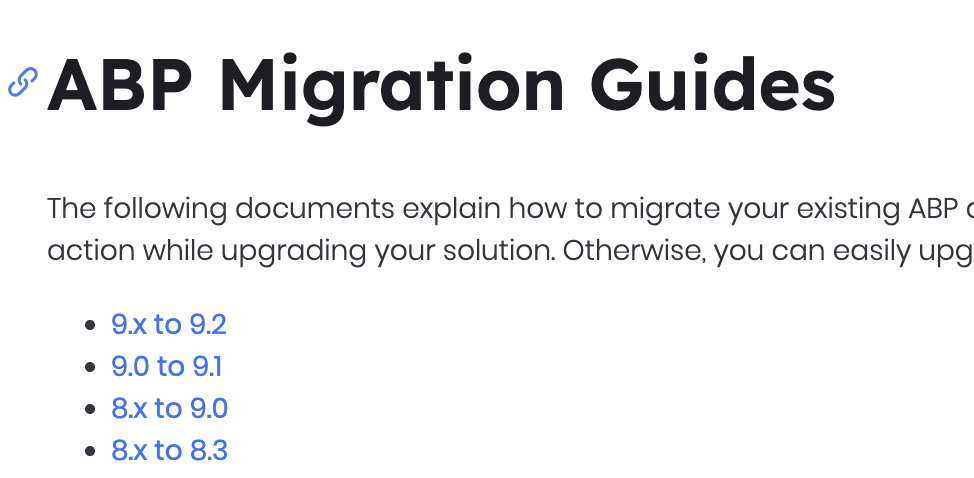Additionally there is no migration guide or release notes on the abp.io website for 9.2?