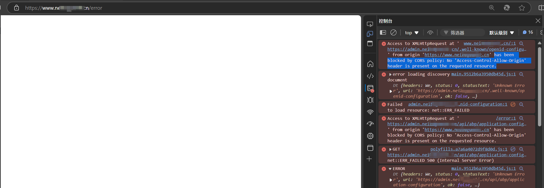 by the pic my api is admin.XXX.CN my web site is https://www.xxx.cn when i open web site , Automatic redirection https://www.xxx.cn/error