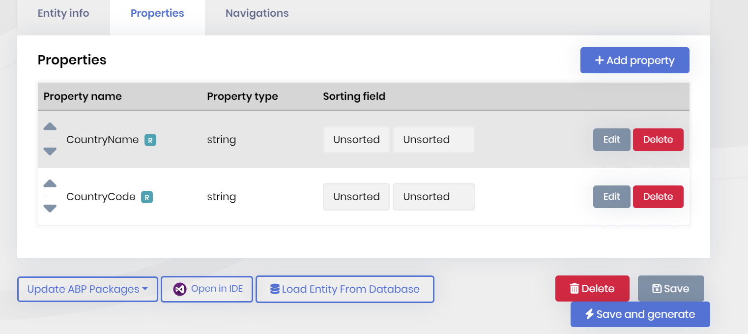 { "Id": "3ddda7fa-e708-4dc5-888a-193a515549bb", "Name": "BaseCountryInfo", "OriginalName": "BaseCountryInfo", "NamePlural": "BaseCountryInfos", "DatabaseTableName": "BaseCountryInfos", "Namespace": "BaseCountryInfos", "Type": 1, "MasterEntityName": null, "MasterEntity": null, "BaseClass": "Entity", "PageTitle": "BaseCountryInfos", "MenuIcon": "file-alt", "PrimaryKeyType": "Guid", "PreserveCustomCode": false, "IsMultiTenant": true, "CheckConcurrency": false, "BulkDeleteEnabled": false, "ShouldCreateUserInterface": false, "ShouldCreateBackend": true, "ShouldExportExcel": false, "ShouldAddMigration": true, "ShouldUpdateDatabase": true, "CreateTests": false, "Properties": [ { "Id": "ff2290d3-7d72-4f7a-beb0-ea4996541ab7", "Name": "CountryName", "Type": "string", "EnumType": "", "EnumNamespace": "", "EnumAngularImport": "shared/enums", "EnumFilePath": null, "DefaultValue": null, "IsNullable": false, "IsRequired": true, "IsFilterable": true, "AllowEmptyStrings": false, "IsTextArea": false, "MinLength": null, "MaxLength": null, "SortOrder": 0, "SortType": 0, "Regex": "", "EmailValidation": false, "ShowOnList": false, "ShowOnCreateModal": true, "ShowOnEditModal": false, "ReadonlyOnEditModal": false, "EnumValues": null, "IsSelected": true, "MaxFileSize": null, "OrdinalIndex": 0 }, { "Id": "d67d54f0-1856-4c7f-b58c-7303be6fd2b7", "Name": "CountryCode", "Type": "string", "EnumType": "", "EnumNamespace": "", "EnumAngularImport": "shared/enums", "EnumFilePath": null, "DefaultValue": null, "IsNullable": false, "IsRequired": true, "IsFilterable": true, "AllowEmptyStrings": false, "IsTextArea": false, "MinLength": null, "MaxLength": null, "SortOrder": 0, "SortType": 0, "Regex": "", "EmailValidation": false, "ShowOnList": false, "ShowOnCreateModal": true, "ShowOnEditModal": false, "ReadonlyOnEditModal": false, "EnumValues": null, "IsSelected": true, "MaxFileSize": null, "OrdinalIndex": 0 } ], "NavigationProperties": [], "NavigationConnections": [], "ChildEntities": [], "PhysicalFileName": "BaseCountryInfo.json" }