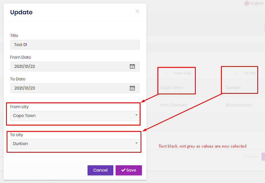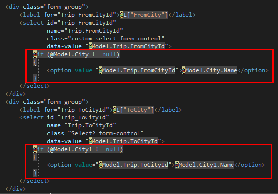 Second problem, if you change any field's data during edit, and save, then the Typeahead fields selections are not saved, unless you re-select them or change them. (values are lossed) Therefore, if you change the value of the entity field "Title" in edit form, the FromCityId and ToCityId data is not passed to the backend and is lossed on save. This may need a hidden field or ....