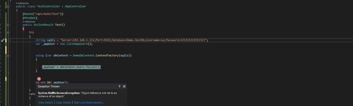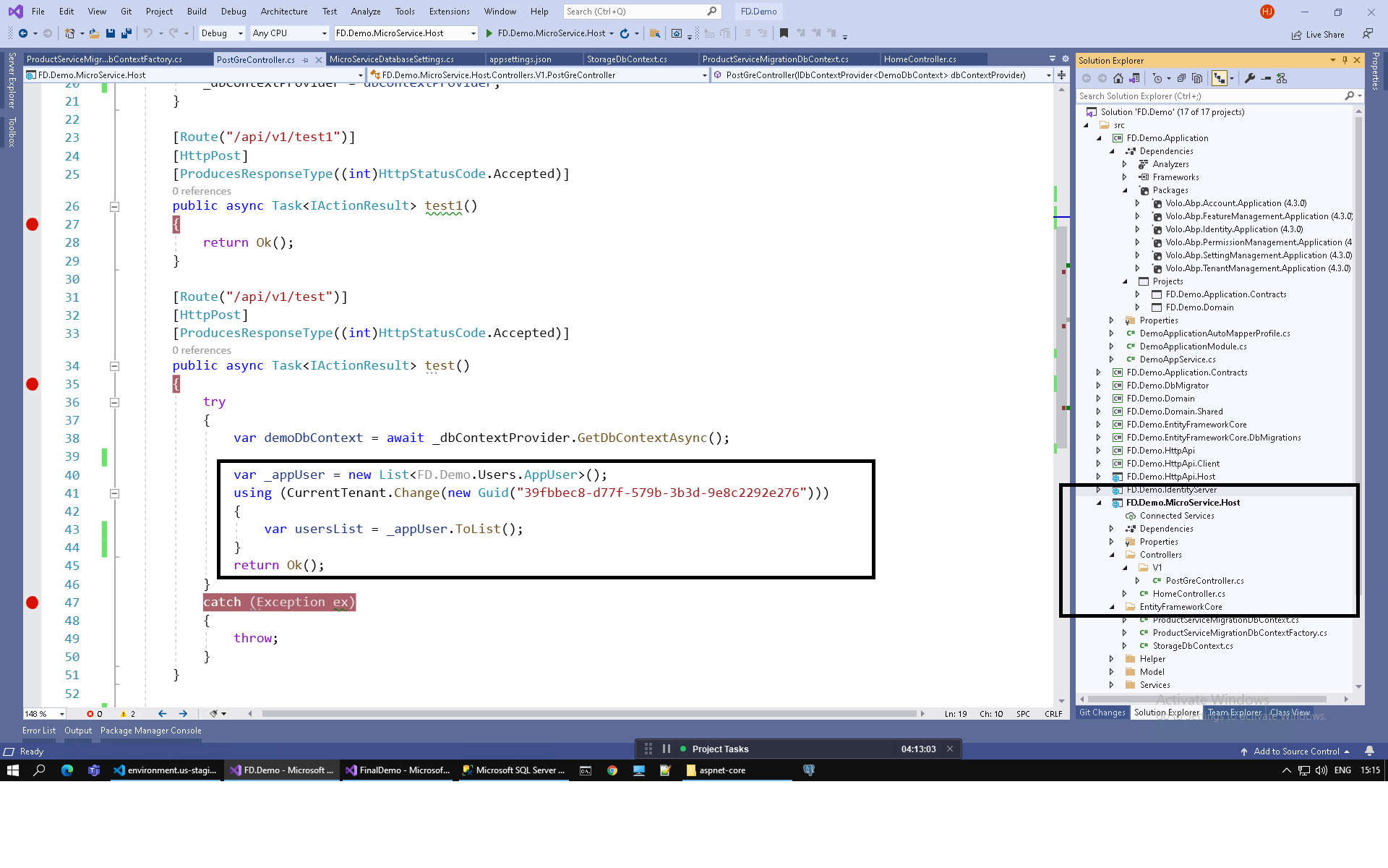 • Steps to reproduce the issue: We have a Microservice project in our solution from which we are trying to connect the database of tenant by providing tenant Id to insert or update any data of particular tenant from the tenant database.