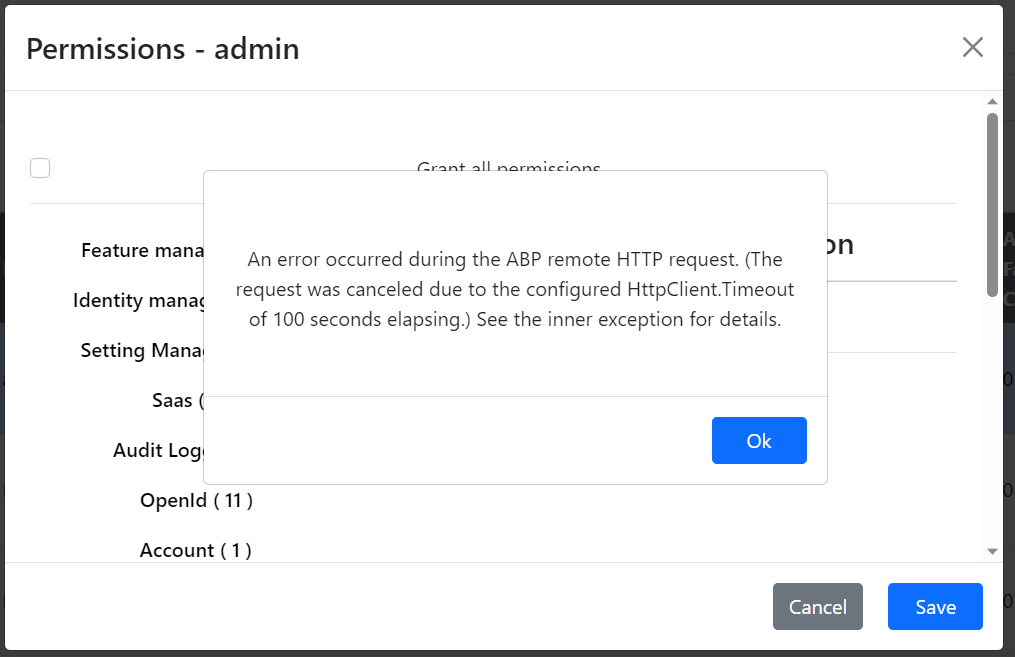 Hi, we are unable to save permissions for users (e.g. ADMIN) and below are the exception details. please let us know if there is anything we can do manually