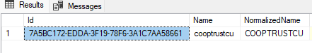 Image of the tenant 'cooptrustcu' in the SaasTenants table.