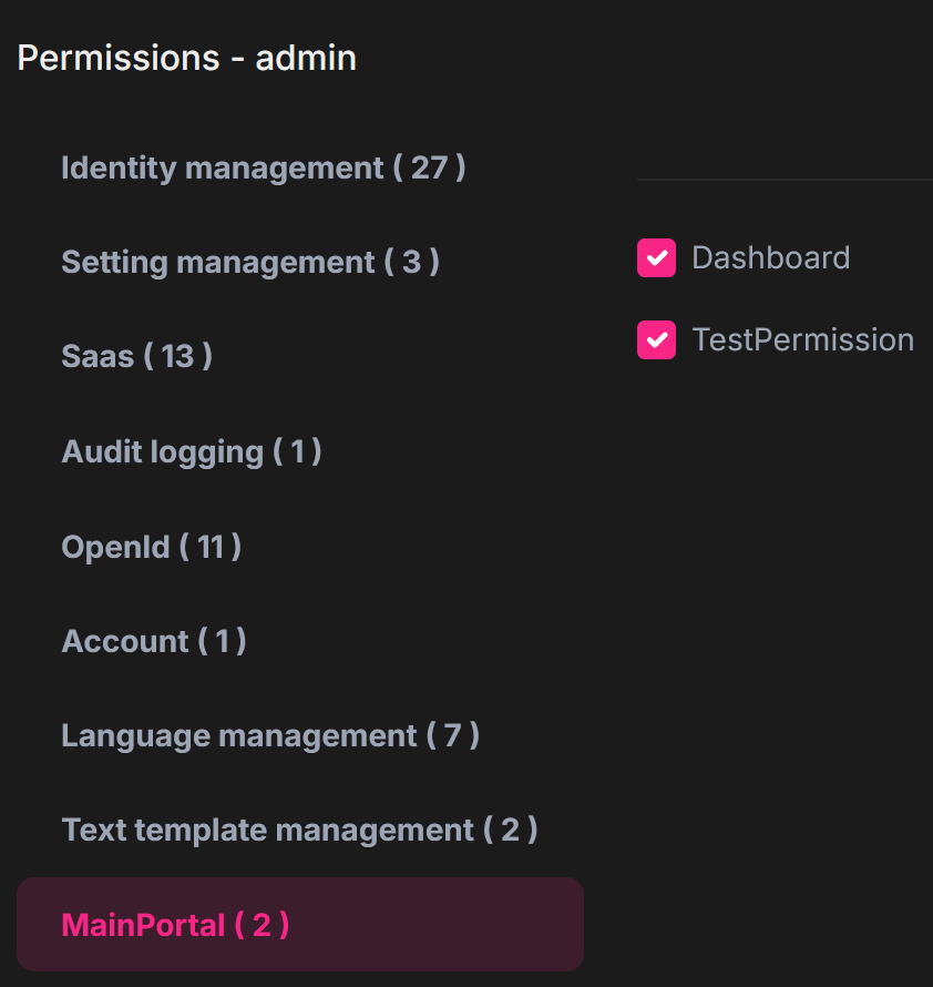 I added a new "TestPermission" in MainPortalPermissionDefinitionProvider.cs