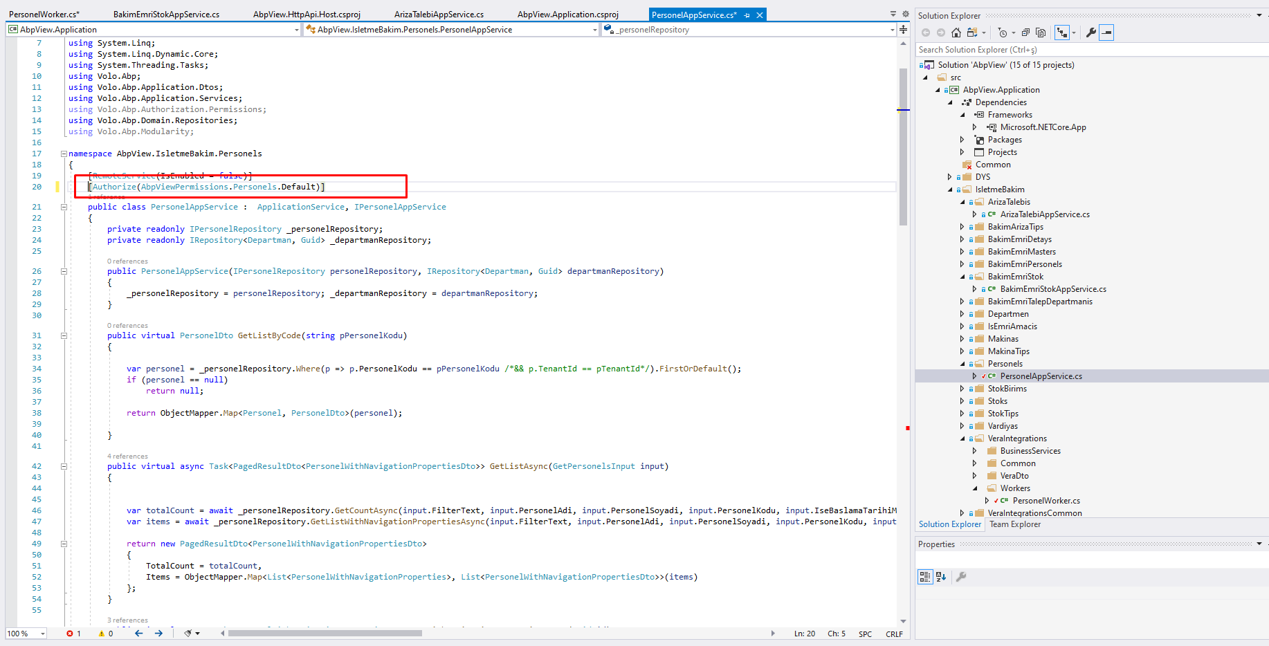 I'm having a problem with authorization in this scenario. My worker runs without any user logins. Therefore, authorization codes on the services not allowed the worker. I think, [Authorize] tags not found any user and tenant information.