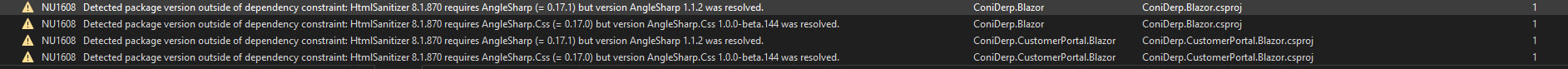 we are getting a warning about AngleSharp version being outside of dependency constraint: