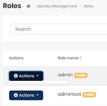 When I login with this user and go to Identity Management -> Roles page and click on Actions combo, I get an empty list (since user does not have edit, delete, change permissions) as shown in the picture below.