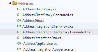 Yes the proxy class is generated for IAddressIntegrationAppService.