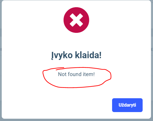 I can translate Titile and Button title but I can not translate Message "Not found item!" - there is not such in dictionary.